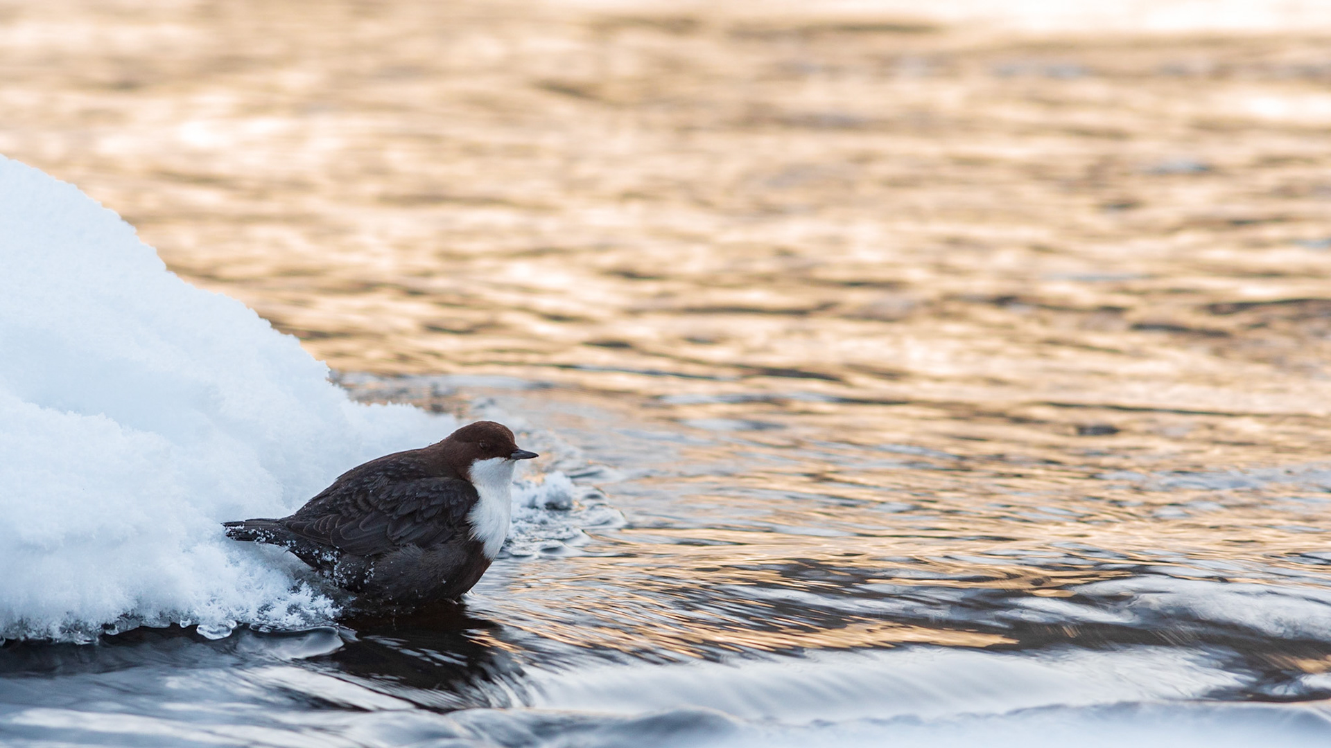 Op plekken met open water waren veel waterspreeuwen te zien. Ik hoopte ze op sneeuw en ijs te fotograferen.