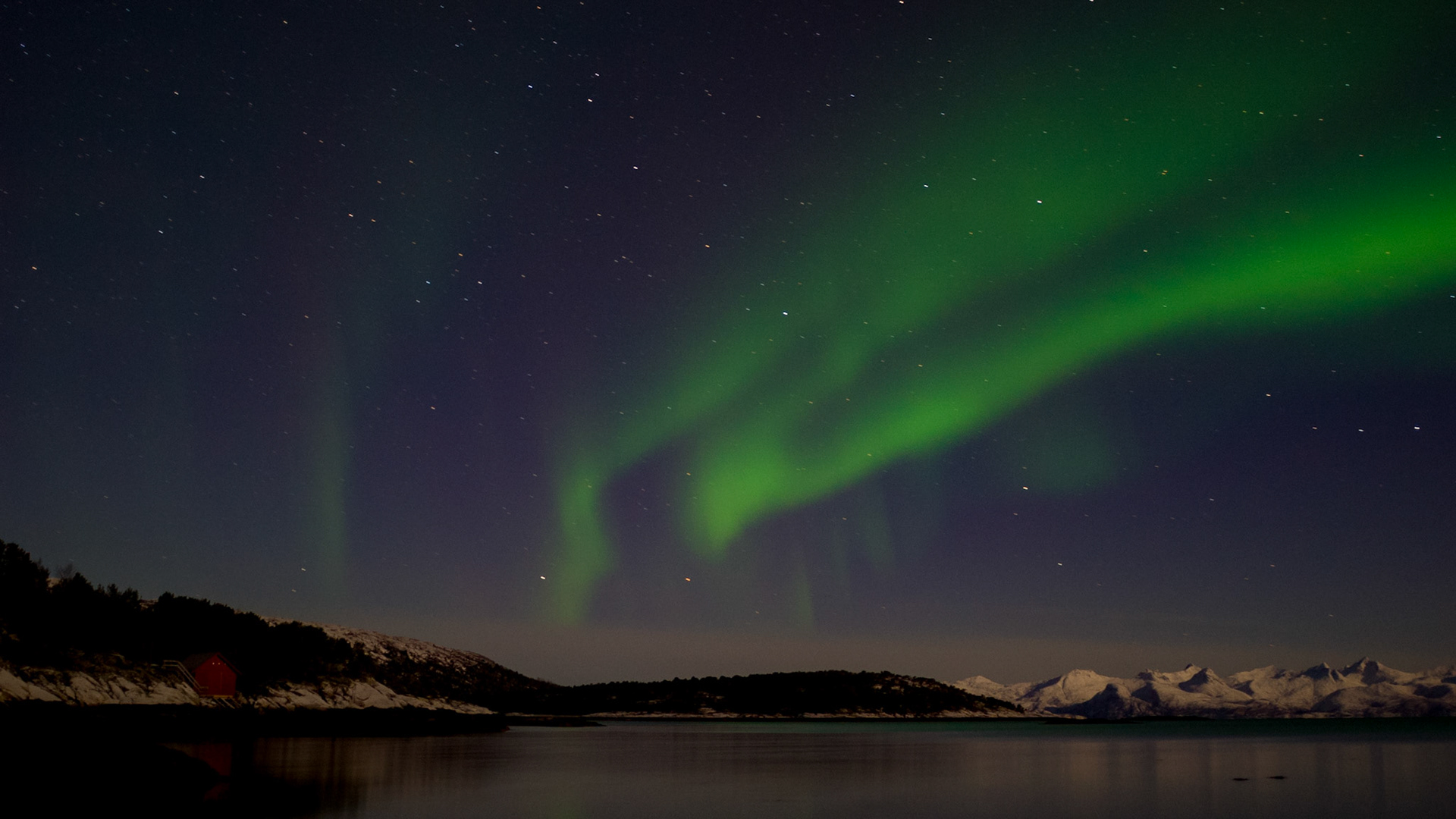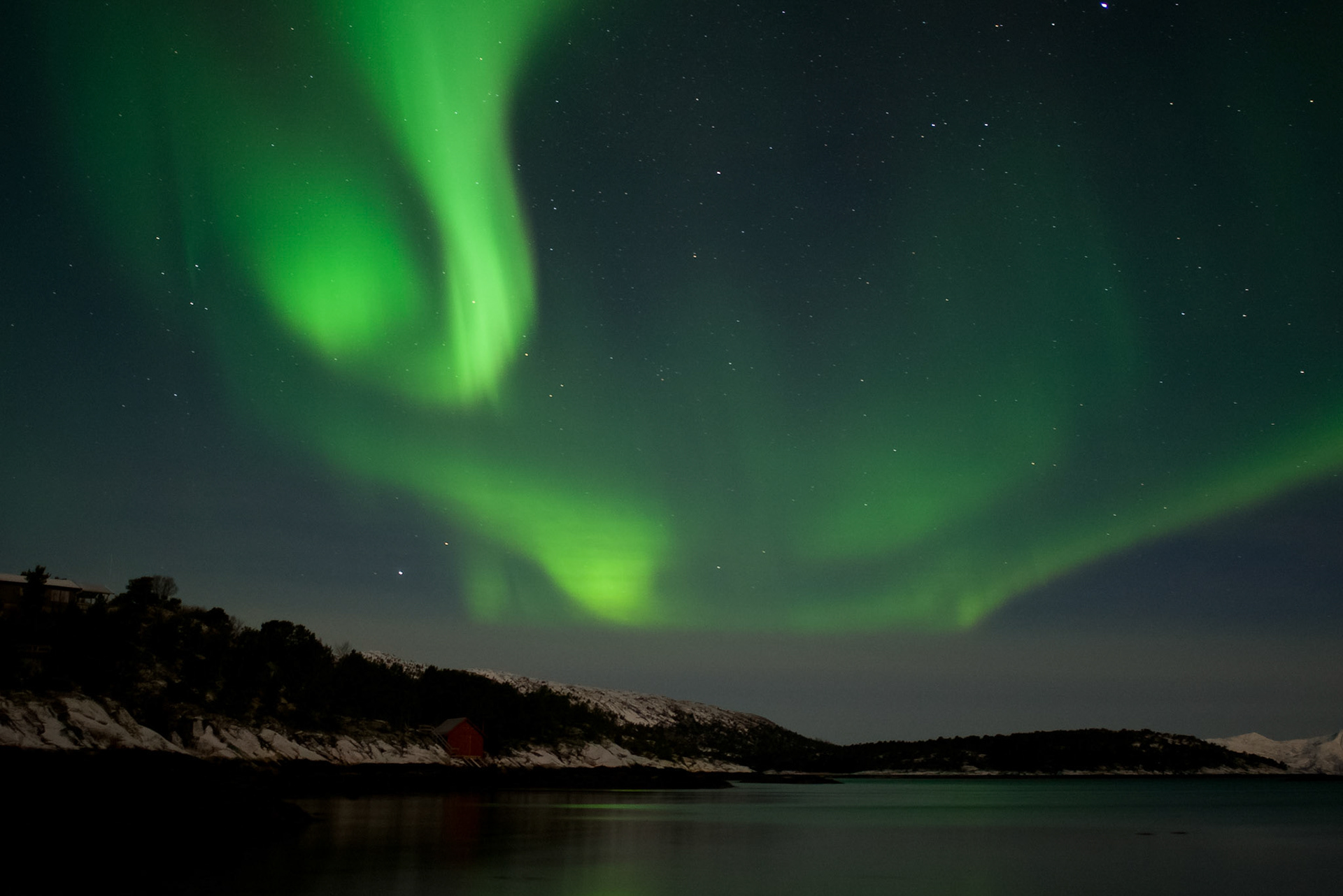 Vanaf een strand heb je de mogelijkheid om ook de reflectie van het noorderlicht te fotograferen.